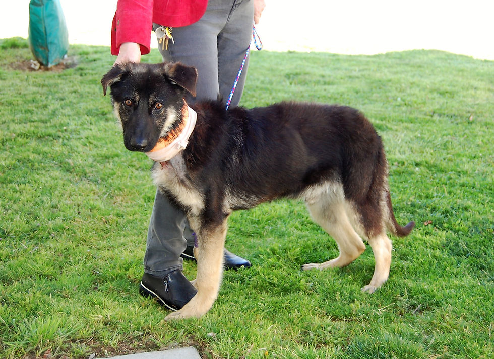 An emaciated, roughly 8-month-old German shepherd mix puppy was found abandoned along Avenue 15, near Road 31 in the north Madera area Tuesday afternoon with a tight canvas collar deeply embedded into the flesh of his neck, according to Madera County Animal Services director Kirsten Gross.