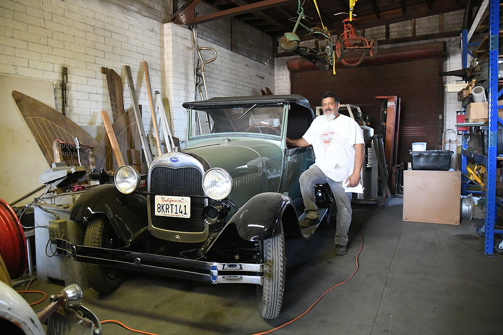 Adolph Bautista stands by a 1928 Ford Model A that he inherited. The vehicle will be up for auction Saturday.
