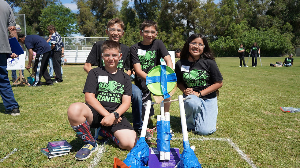 Team members Sherman Thomas Surge Showdown seventh grade team stand next to their launcher include Liam Maya, Payton Maya, Marilyn Moraga, Andre Torok.The team was coached by Jamie Brock and Angie Reed.
