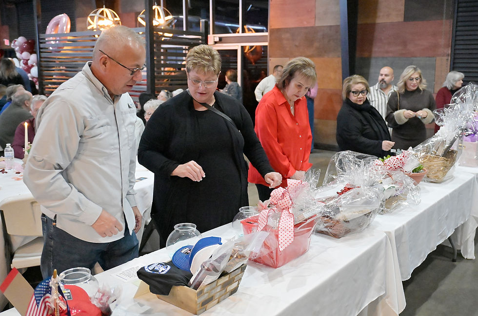 Attendees look at raffle prizes during the event.